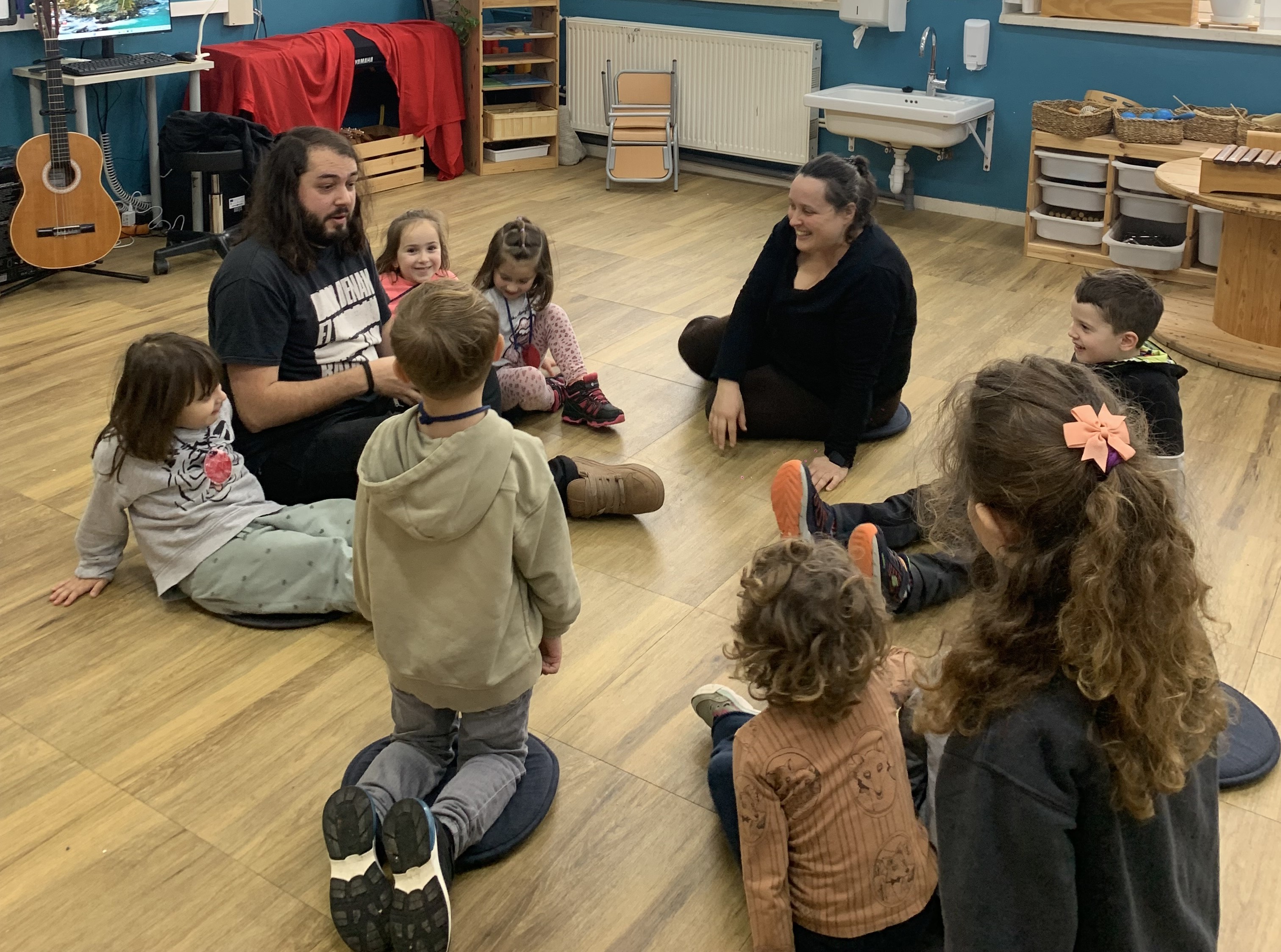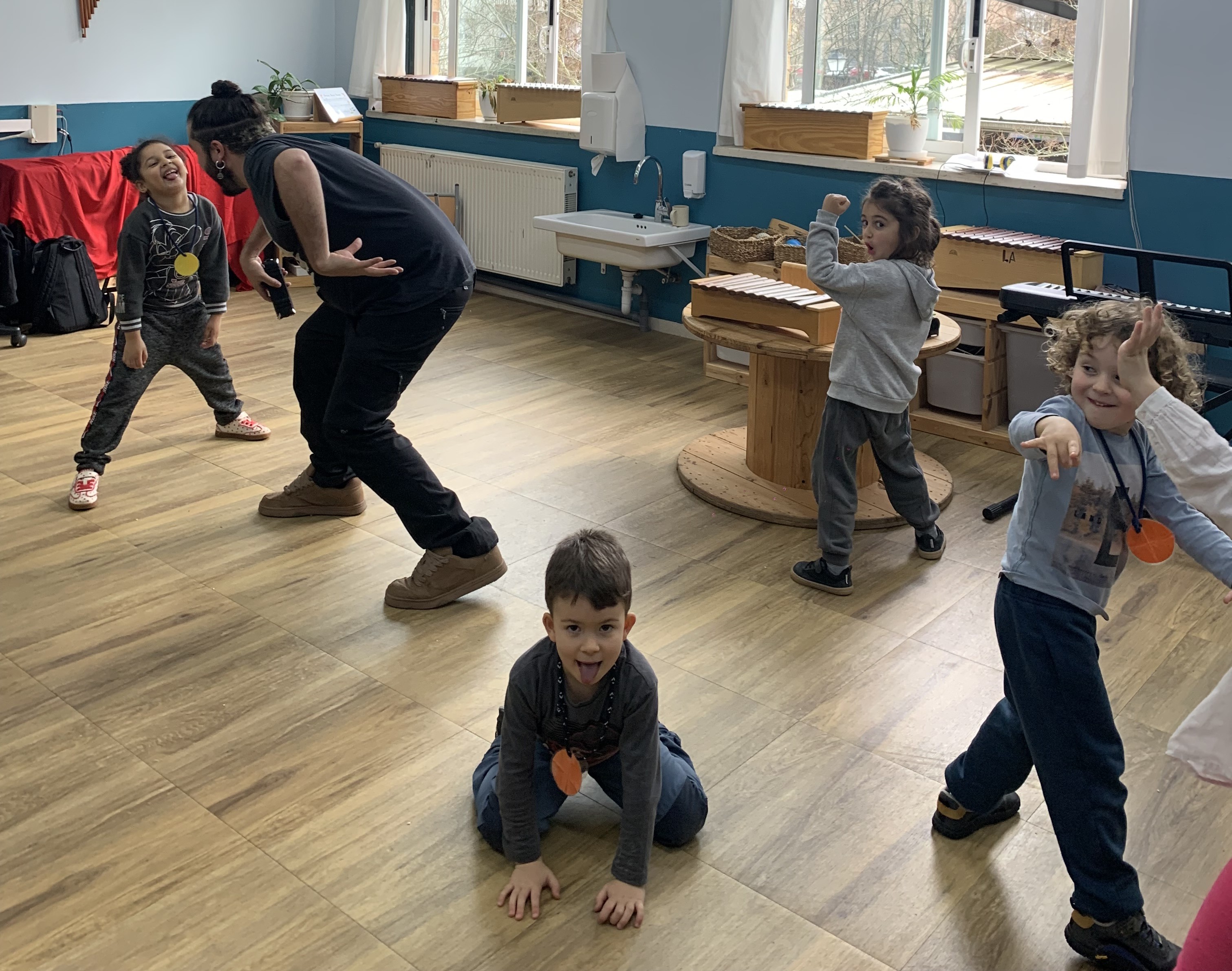 Gaur talde elkarreragileen beste saio bat izan dugu. Musikan estatuen jolasaz eta aulkien jolasaz gozatu dugu.