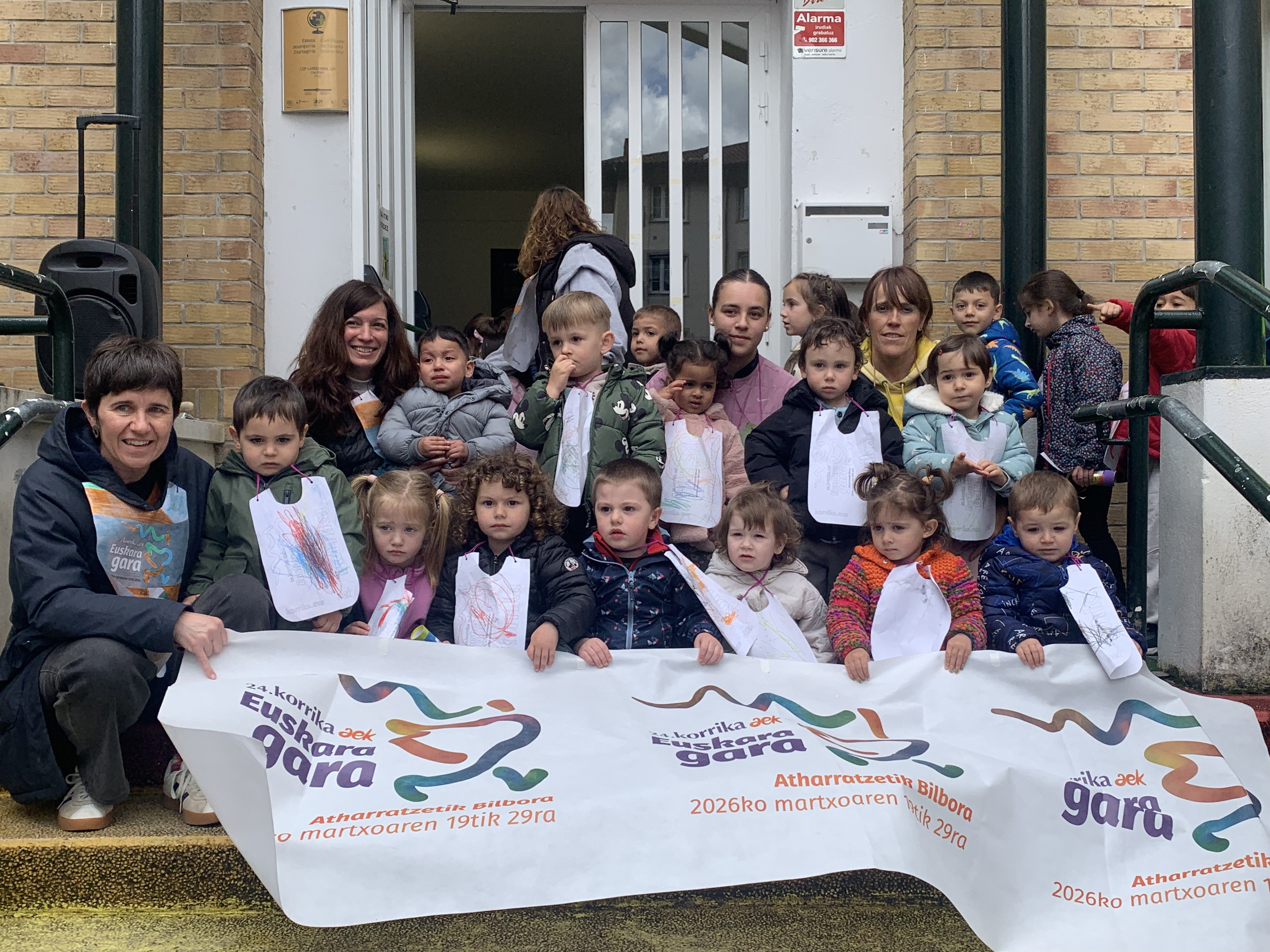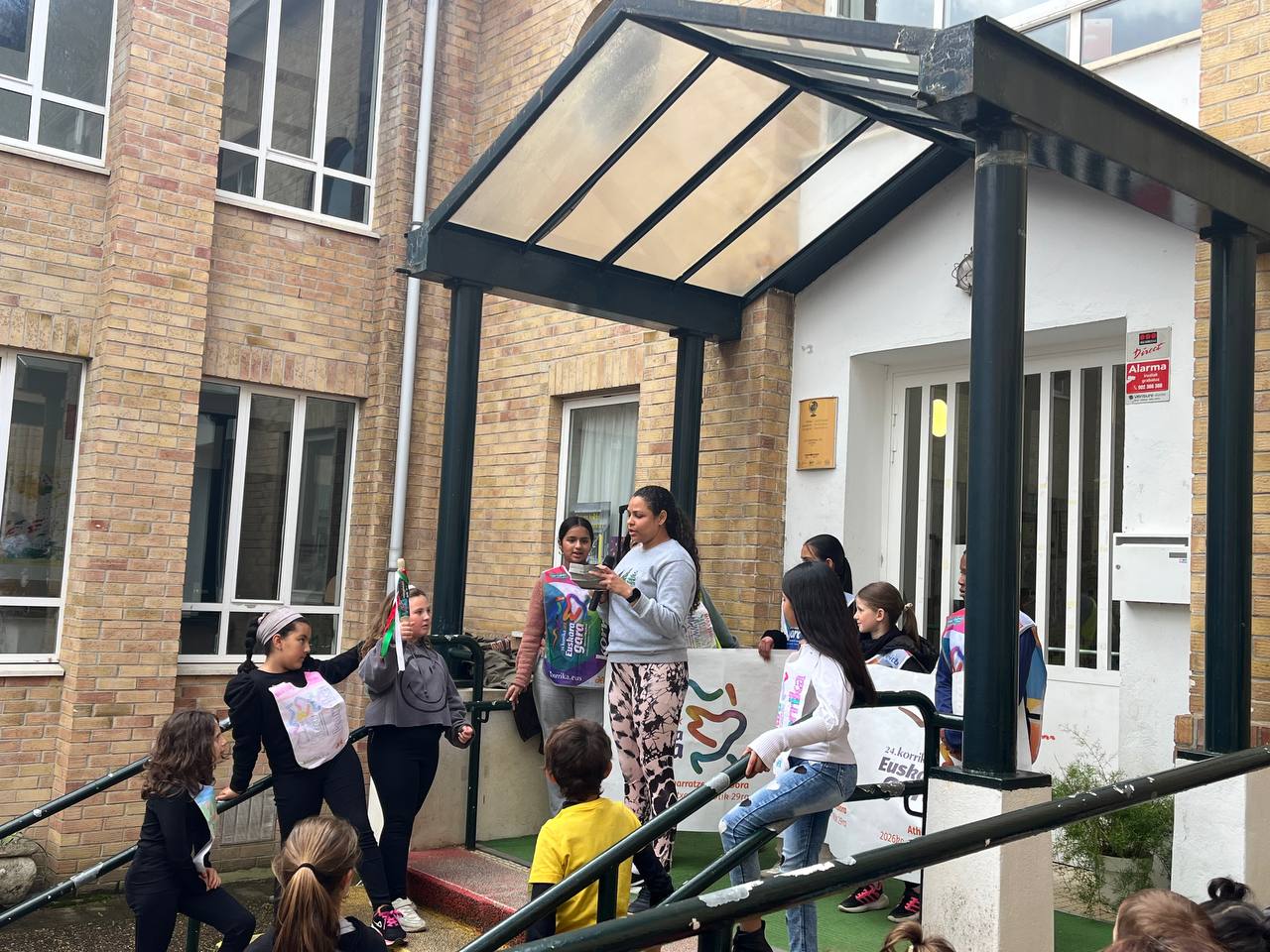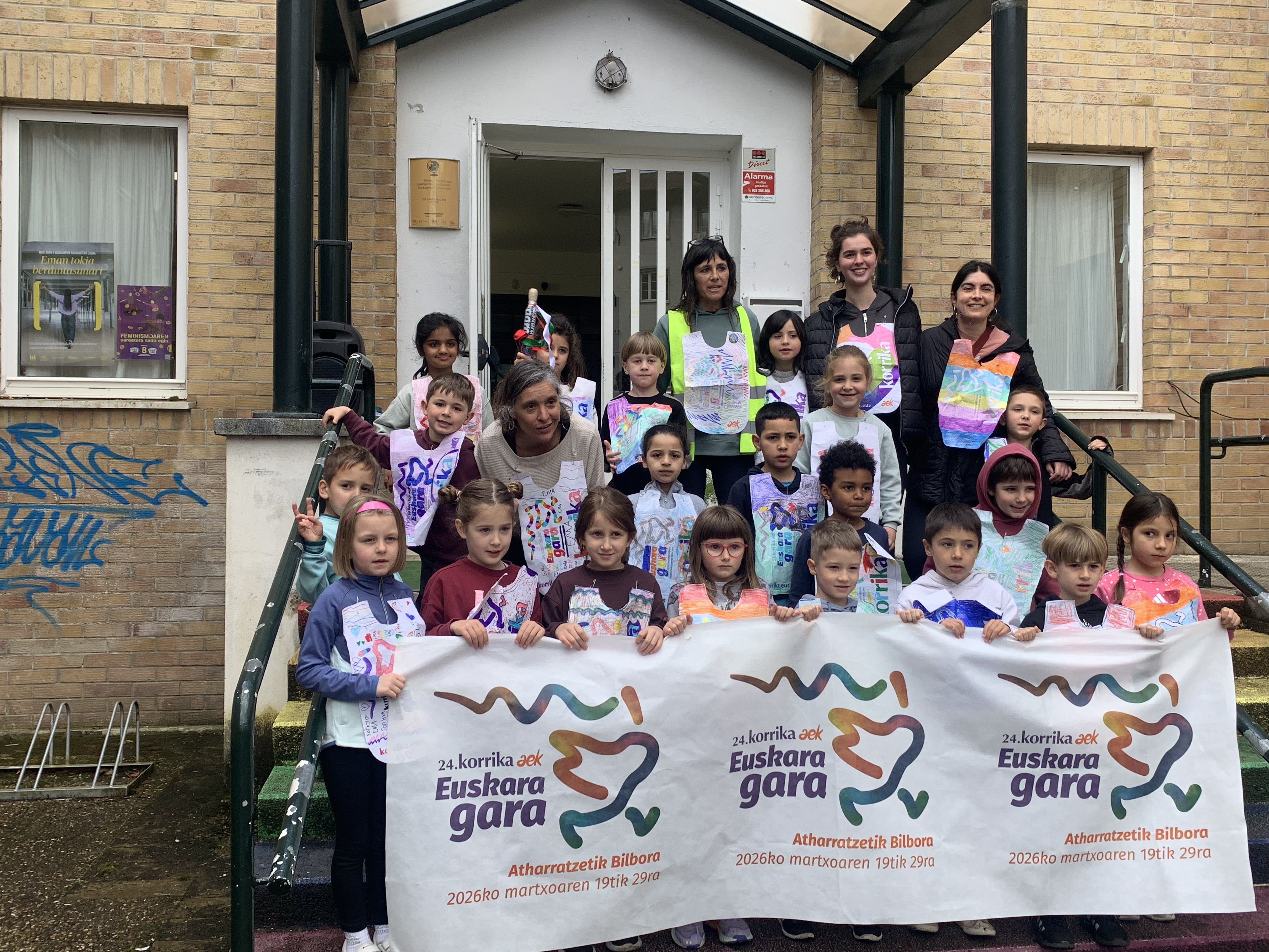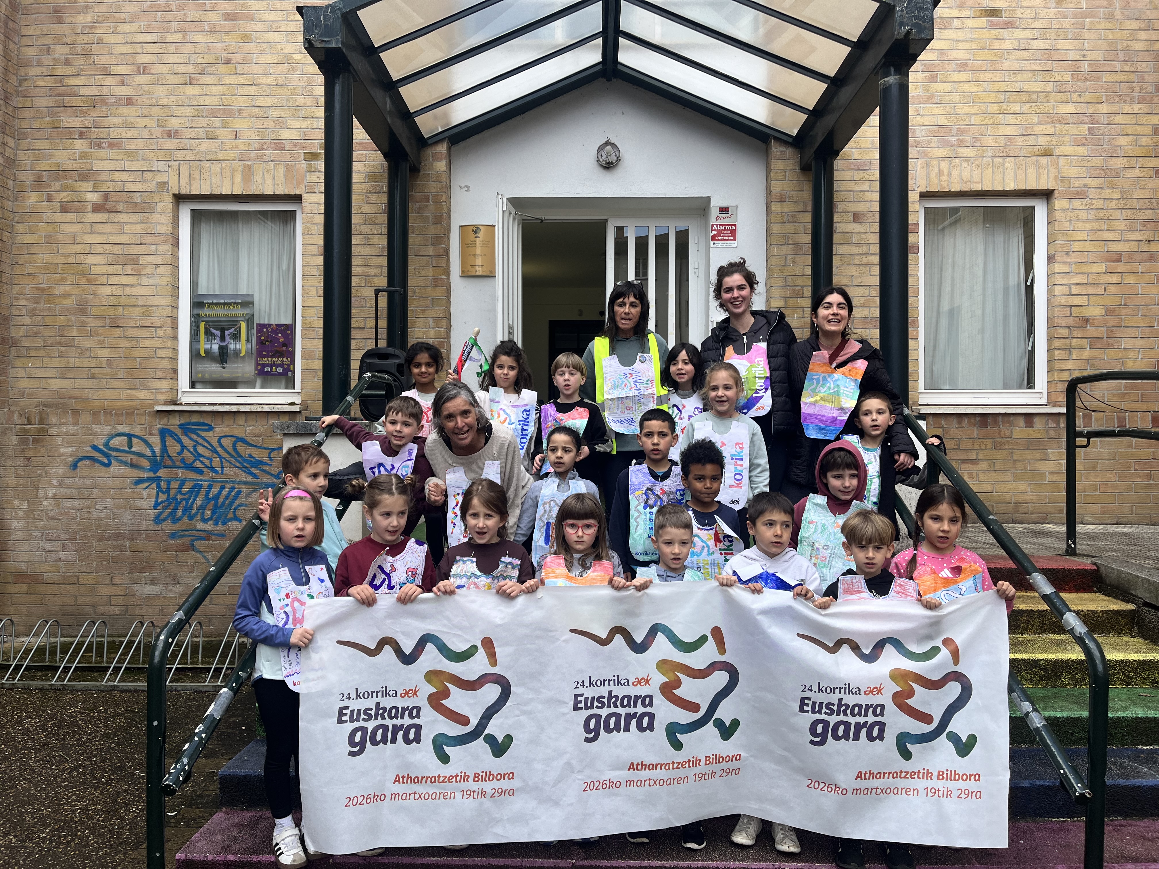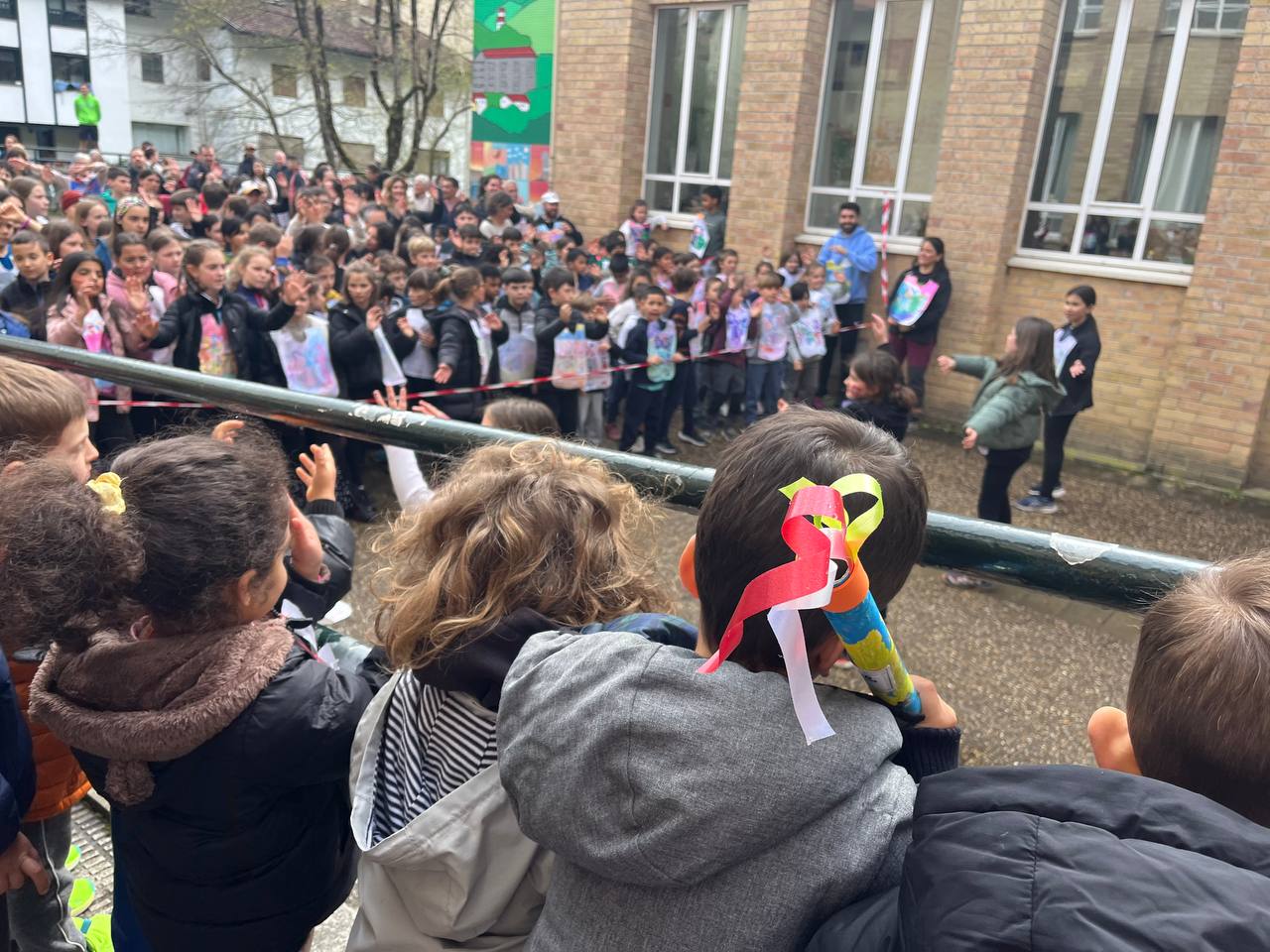 “Euskara gara” lelopean 11:30ean abiatu gara eskolatik eta aurtengoan ere lekukoa eskuz esku pasatu dugu adin guztietako ikasleen artean. Ibilbidearen amaieran, denok eskola atarian elkartu eta lekukoak zekarren mezua irakurri dugu. Aurtengoan, mezua Yolismar eta Nekanek ondu dute; AEK-k eta UEMA Udalerri Euskaldunen Mankomunitateak lankidetzan antolatutako Ongi etorri euskarara ikastaroko protagonistek, alegia.