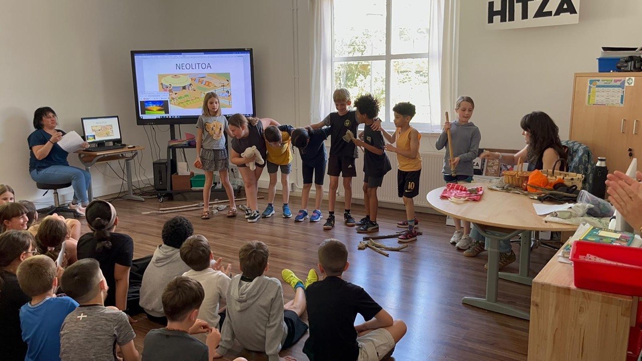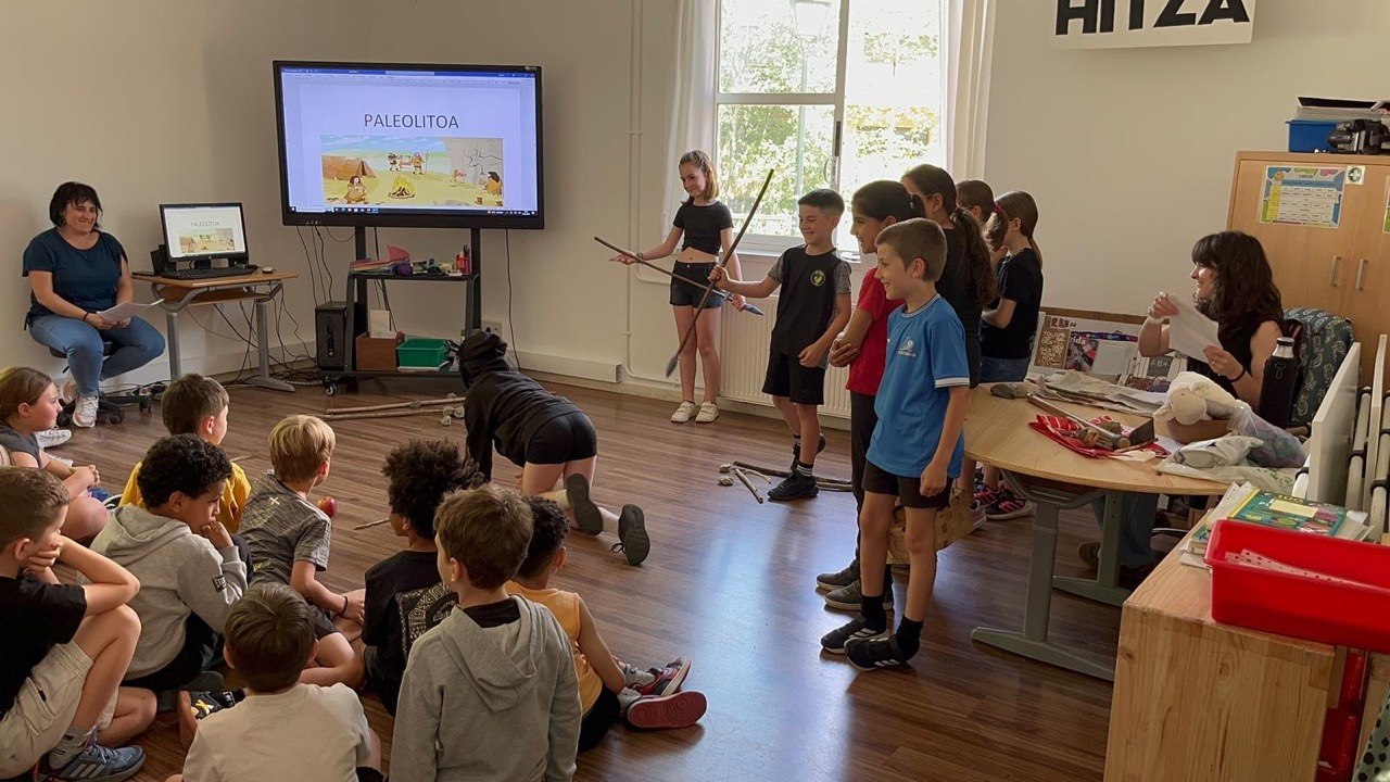 "Emakumeak ehizaten al zuten edo soilik suaz arduratzen ziren?" ikas egoerari bukaera emateko hiru antzerki txiki prestatu genituen. Antzerkietako bat paleolito garaian kokatu genuen, bestea neolitoan eta azkena metal aroan.