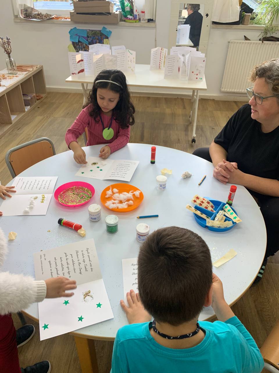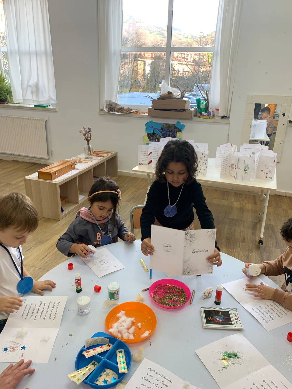 Ekosistema ezberdinetan hainbat proposamenetan murgildu ginen. Psikomotrizitate gelan gorputz geometrikoen bilaketan ibili ginen, arte ekosisteman gure gabonetako postalak apaintzen aritu ginen, zientzia eskosisteman Olentzeroren ipuinaz gozatzeko aukera izan genuen eta musika ekosisteman gabonetako abestiak mikrofonoarekin kantatzen primeran pasatu genuen.