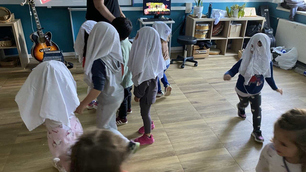 Ikasturteko bigarren talde elkarreragileen saioa burutu genuen aurreko ostegunean. GAU BELTZAren inguruan antolatu genuen arratsaldea. Musika gelan abesten eta dantzatzen aritu ginen. Liburutegian ipuin kontaketaz gozatzeko aukera izan genuen. Arte ekosisteman kalabazen karetak egin genituen eta matematikako ekosisteman bingoan jolastu ginen.