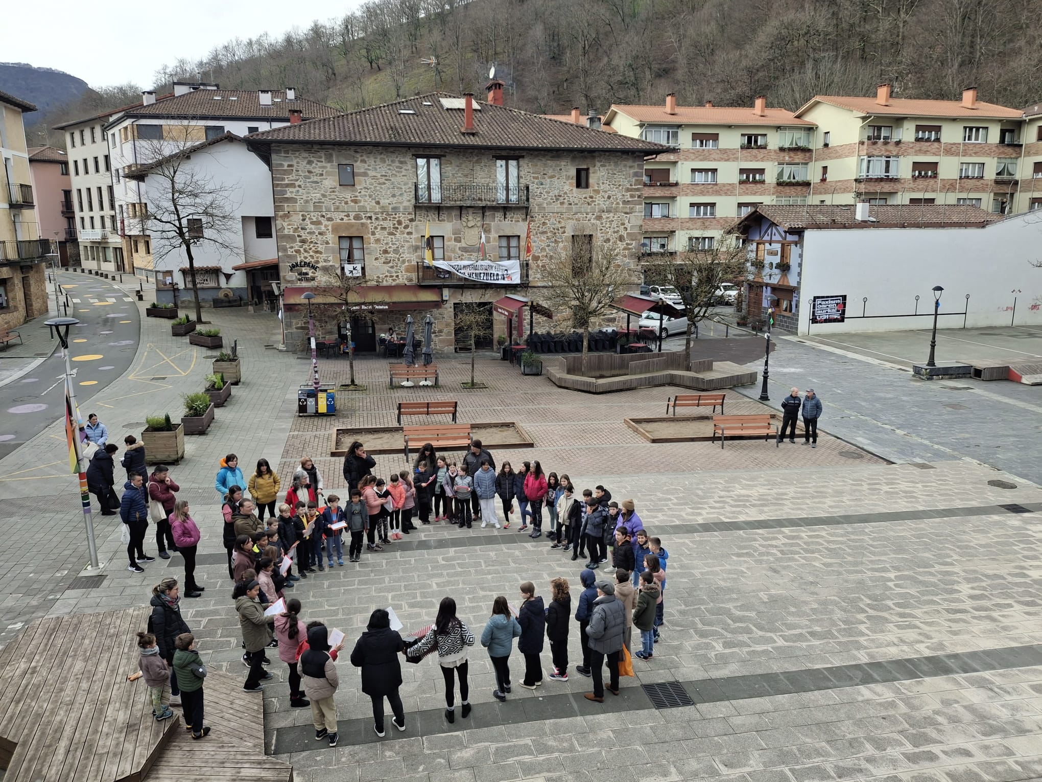 Hilabete hontan LH3 eta LH4ko egokitu zitzaien, eta plazan bildu ziren ikasleen familiarteko eta herritarrekin batera abestu zuten trikitiak lagunduta.