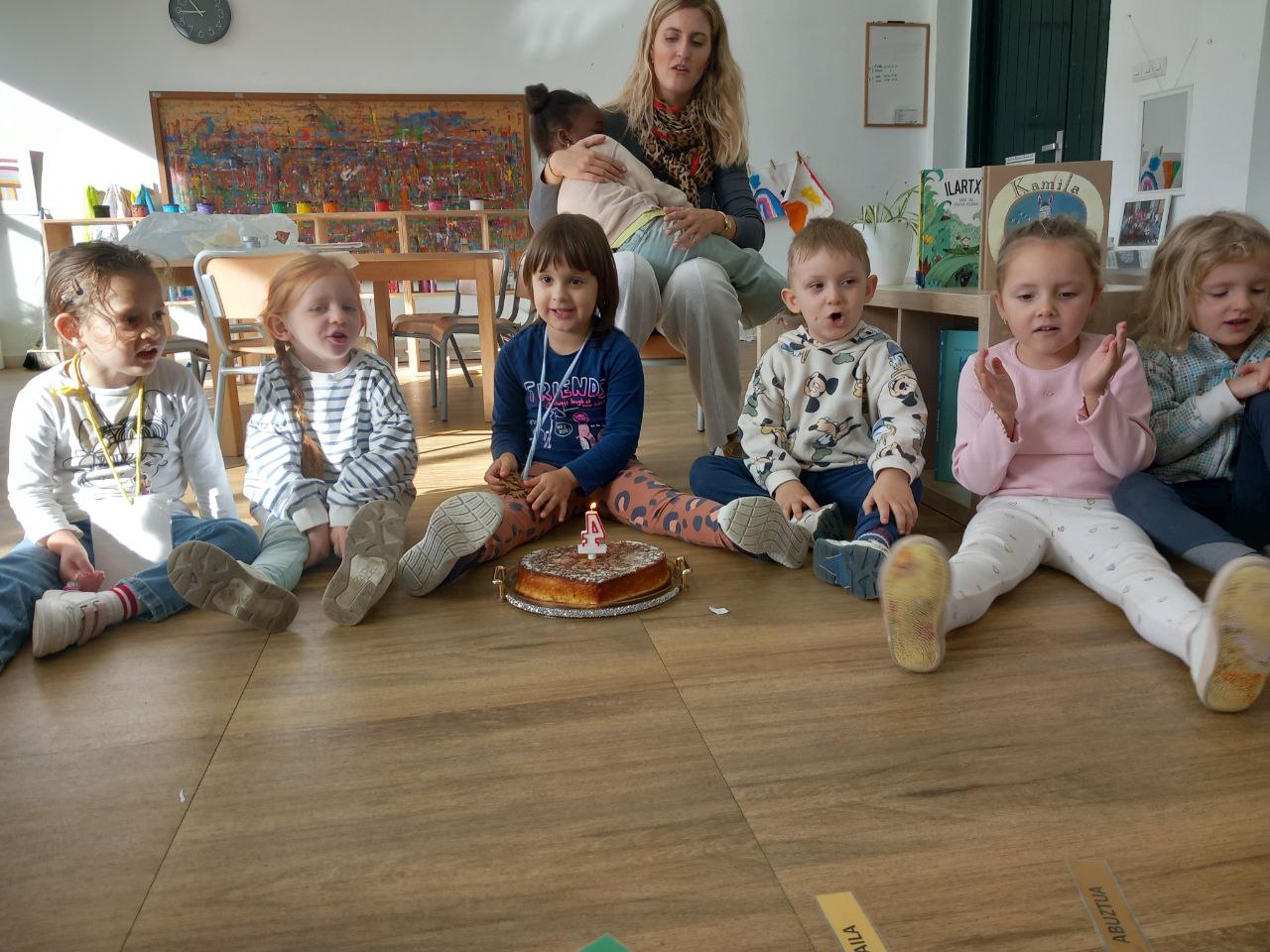 Gaur Noak 4 urte bete ditu eta bihotz formako bizkotxo goxo goxoa janez ospatu gelan!! Zorionak Noa!!